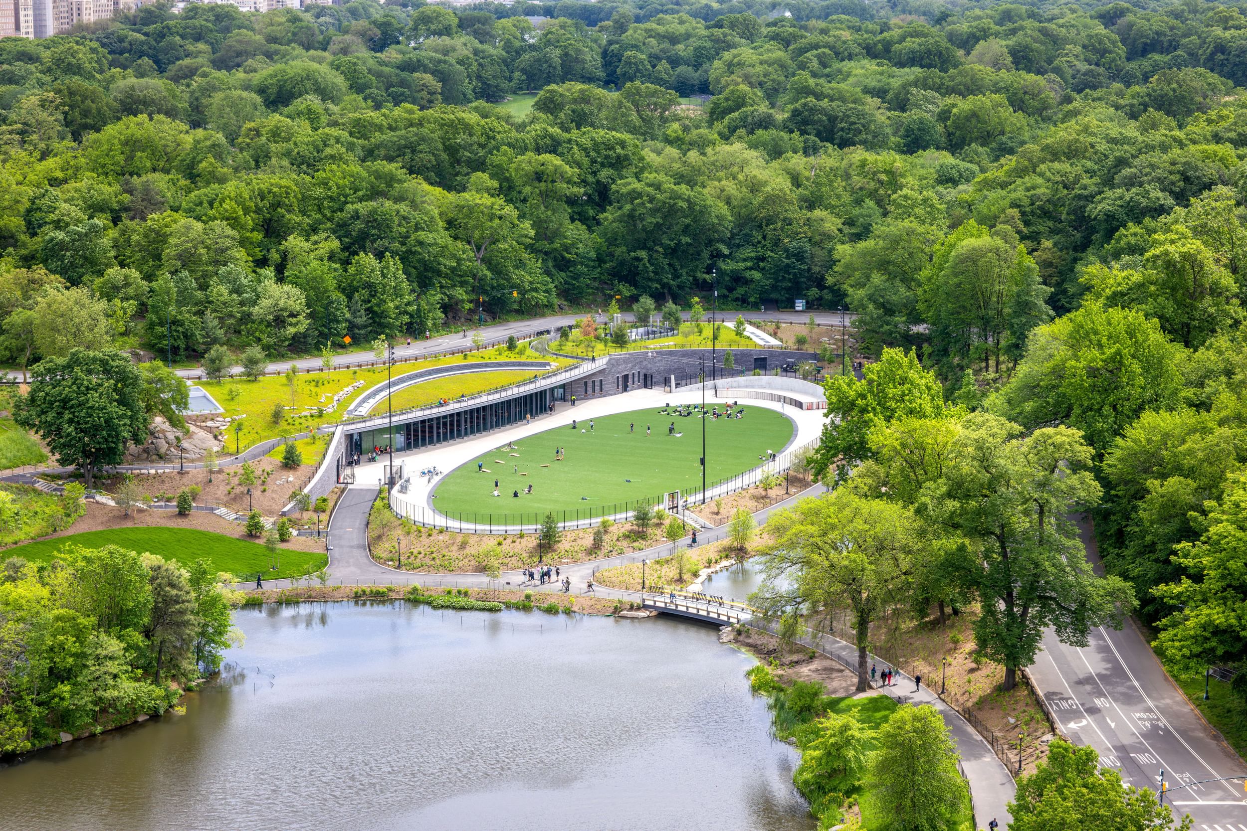 The Davis Center seamlessly integrates into Central Park’s north end, reconnecting the community with nature and restoring access to the landscape that was once obstructed.